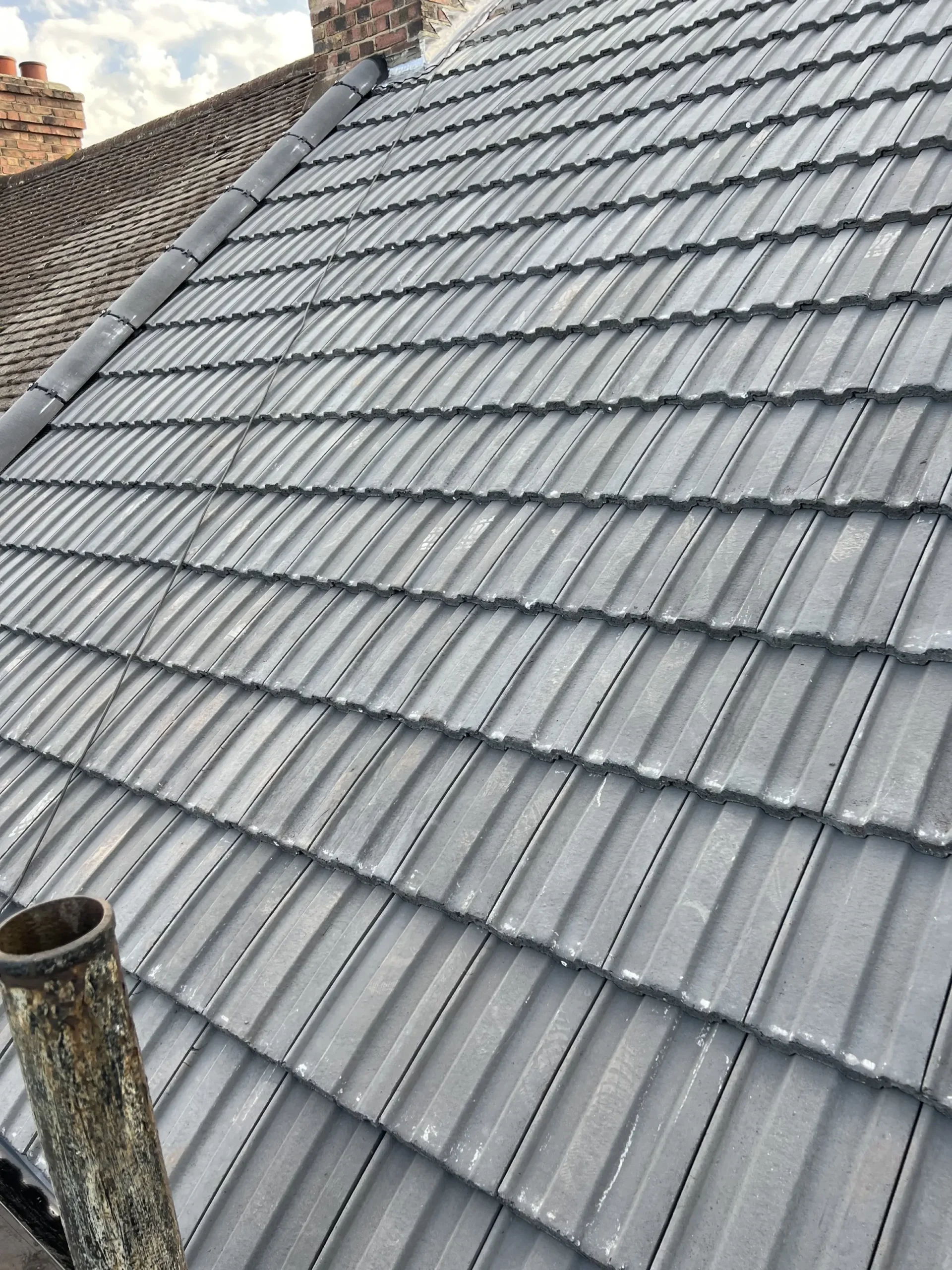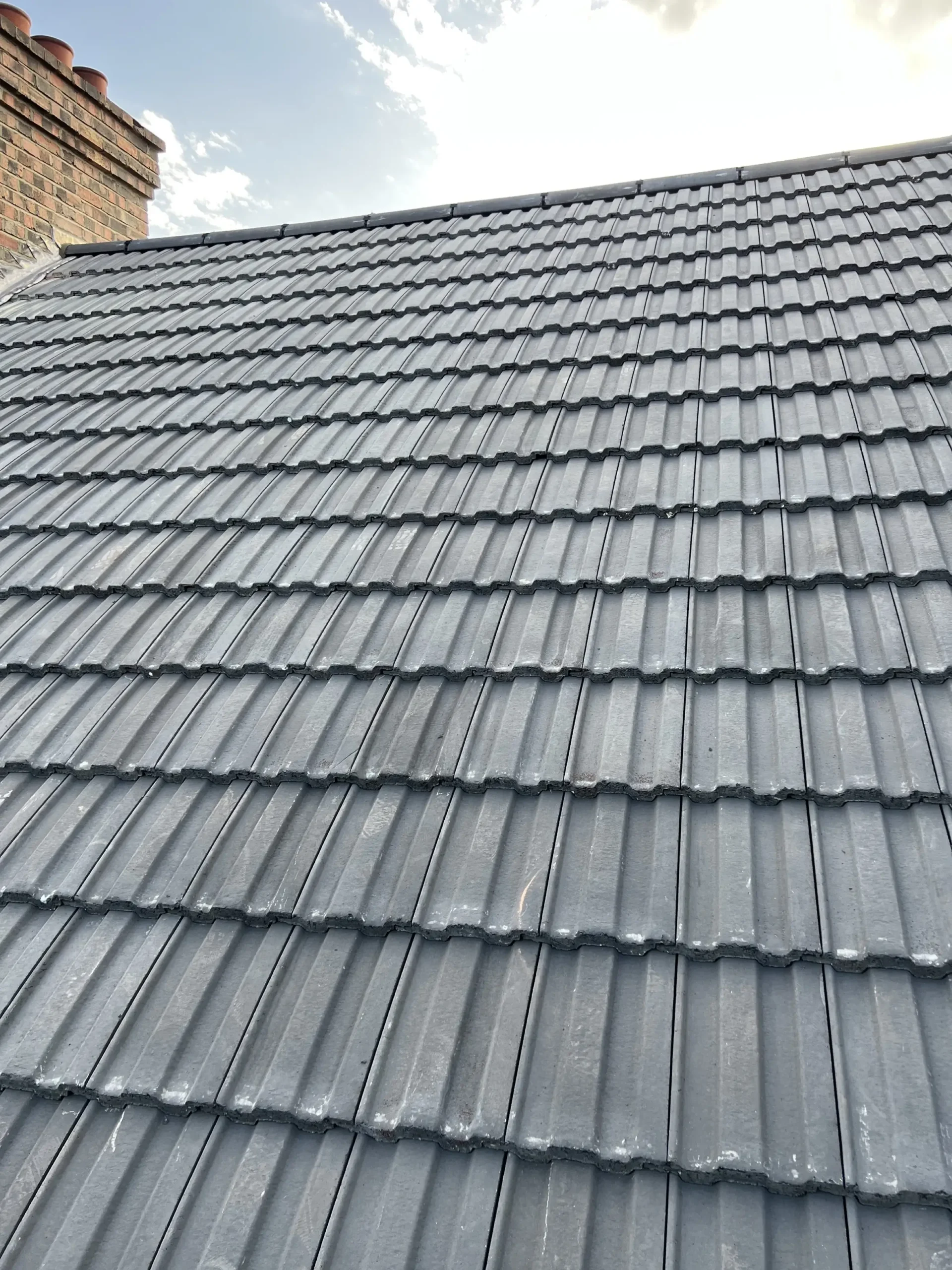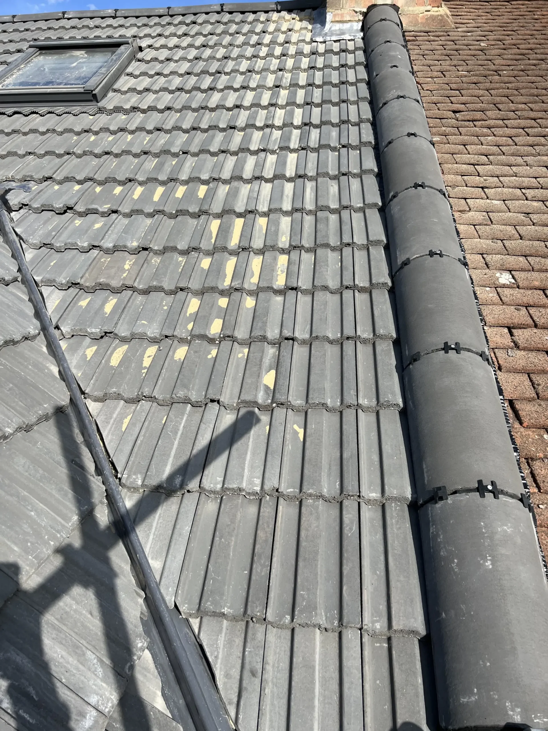 Close-up of the neat ridge tile finishing and weatherproof join.