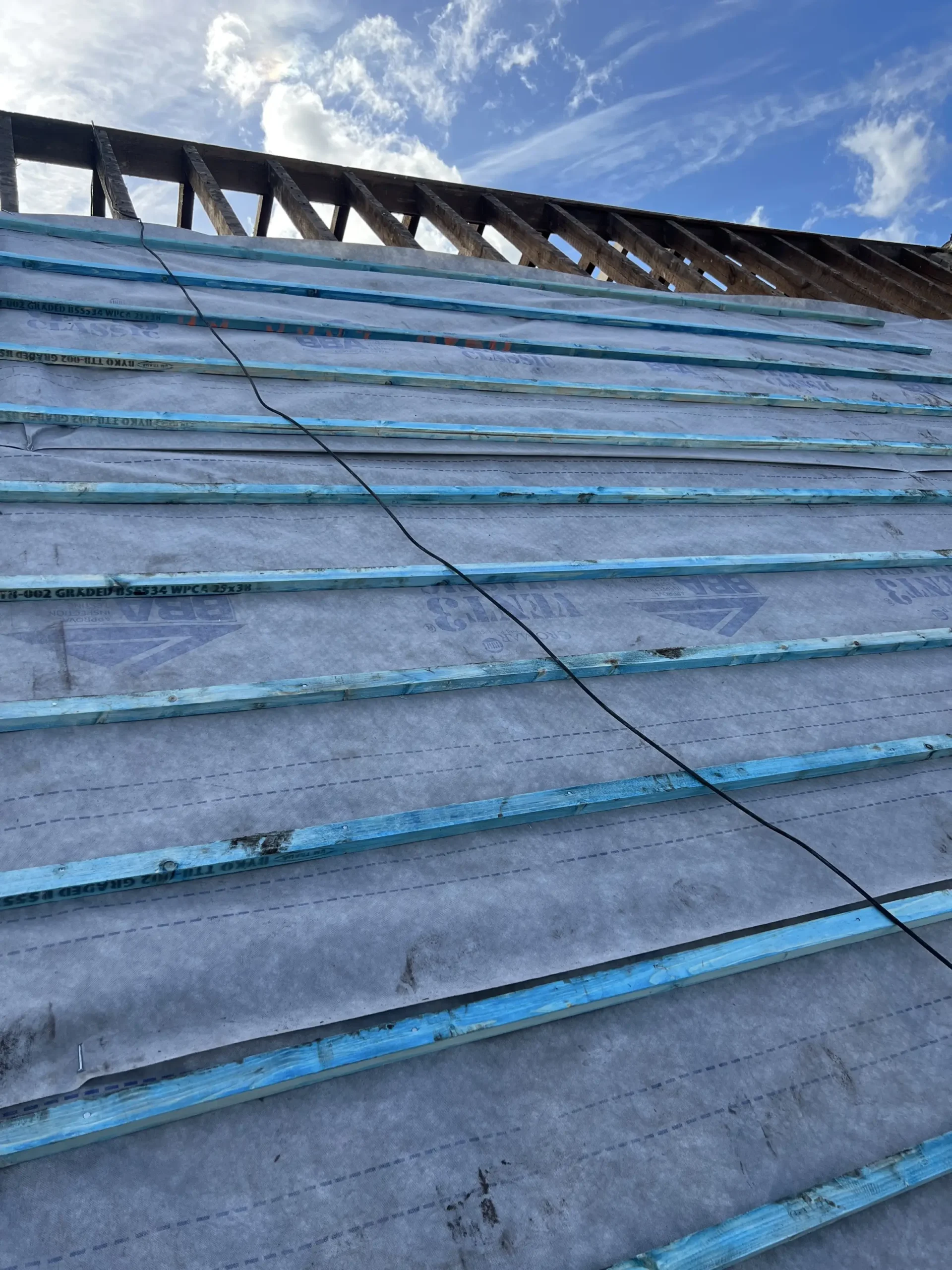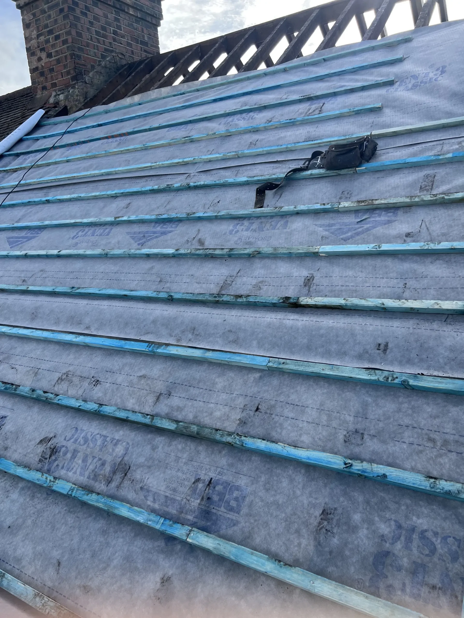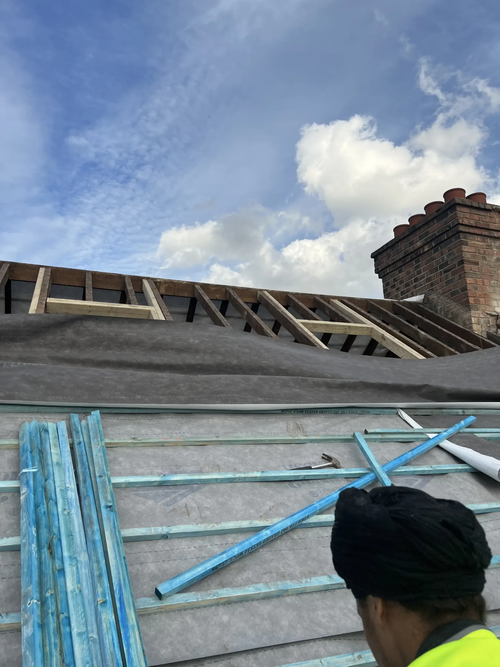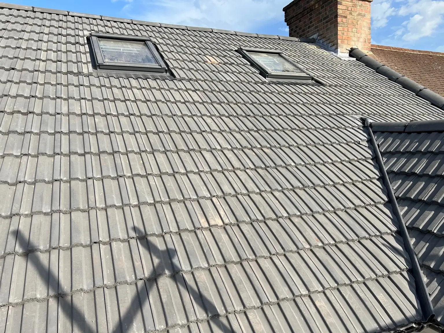 Close-up of the neat ridge tile finishing and weatherproof join.